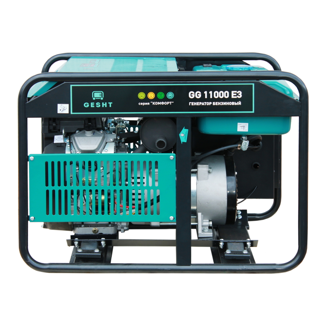 Бензиновый трехфазный генератор Gesht GG8800Е3 имеет номинальную мощность 8 кВт. Он оснащен надежным двигателем собственного производства GESHT 188 F. Этот агрегат - незаменимый помощник на даче, в загородном доме, гараже или строительной площадке. Бензиновая установка разработана российскими и немецкими инженерами с учетом экстремальных погодных условий и прекрасно подходят для эксплуатации в России.